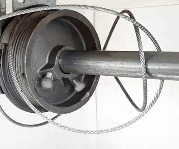 A garage door cable that has come off the drum is a critical and dangerous failure. The “drum” is the spool at the end of the torsion spring shaft that the cable winds onto. When a cable unwinds or comes off this drum, your garage door will immediately become crooked, unbalanced, and completely stuck, often leaving one side on the ground and the other hanging.